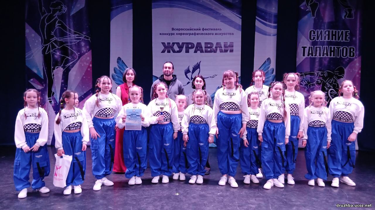 Хореографический коллектив детского и современного танца «Сказка» Центра народного творчества «Дружба» принял участие во Всероссийском конкурсе - фестивале хореографического творчества «Журавли» г. Саратов и завоевал диплом Лауреата I степени.