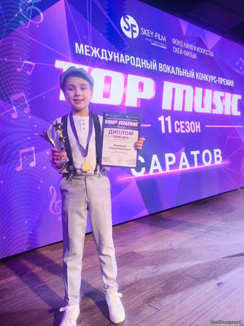 Георгий Маркарьян - солист «Народного коллектива» вокальной студии «Тоника Центра народного творчества «Дружба» стал обладателем Гран-при Международного вокального конкурса-премии «TOPMUSIC». Конкурс прошёл 1 марта в ТРЦ ПОБЕДА ПЛАЗА г. Саратов с целью выявления молодых талантливых исполнителей.